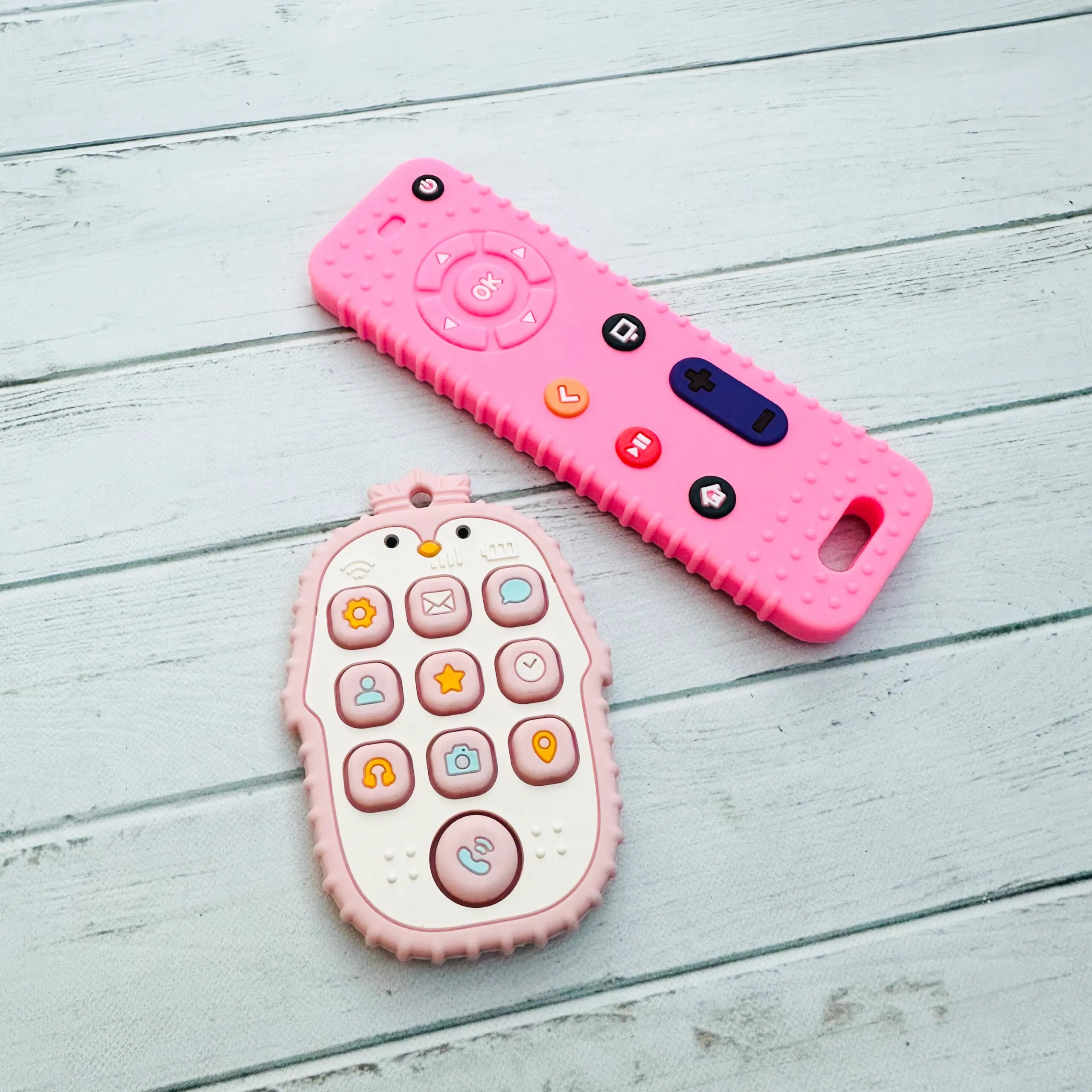 ¡Dale a tu pequeño un compañero de dentición divertido y seguro con nuestro pack de mordedores de control remoto!