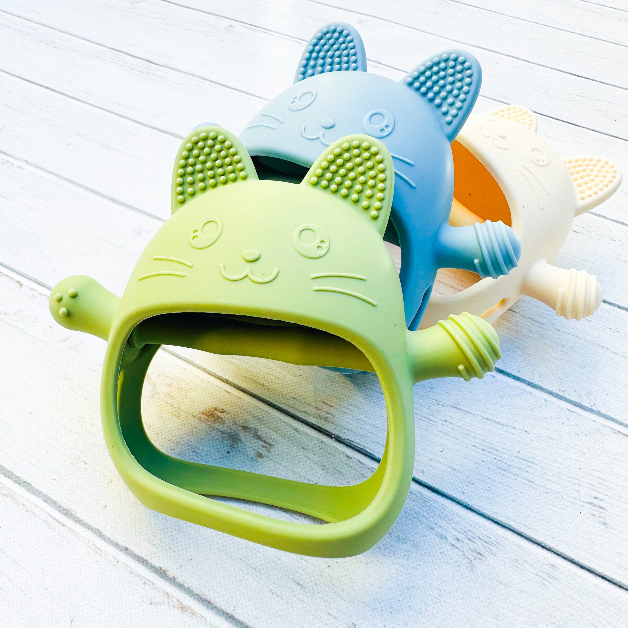 Se usa como una especie de guante, donde por reflejo, la introducir su manito, tu pequeñ@ apretará el puño sujetándolo de un soporte interior. Sus múltiples superficies de contacto ayudarán a aliviar los malestares producto de la erupción dental. Las manitos del pollito simulan la forma natural del pezon.