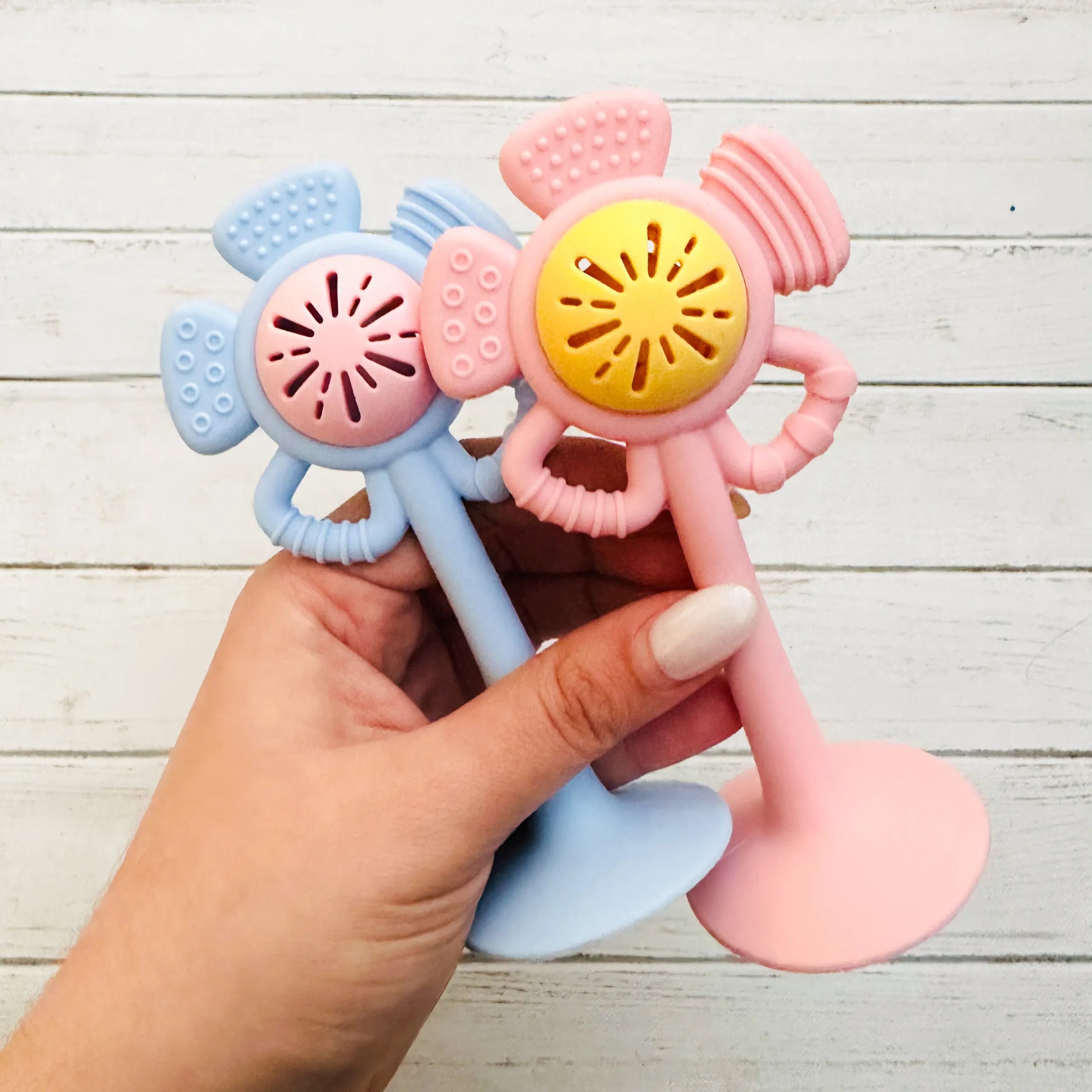 Descubre el mordedor perfecto para tu bebé: nuestra flor de silicona libre de BPA combina diversión y funcionalidad para acompañar el proceso de erupción dental. Diseñado como un mordedor y sonajero, su base con ventosa se adhiere firmemente a superficies lisas, ofreciendo estabilidad y seguridad durante el juego y el alivio de las encías. Con superficies texturadas y rugosas estratégicamente ubicadas, este mordedor no solo calma las molestias del crecimiento dental, sino que también es compatible con nuestras cuerdas de silicona gracias a sus pestañas ajustables, permitiéndote llevarlo a todos lados sin riesgo de perderlo. ¡El compañero ideal para cada etapa de desarrollo de tu pequeño!