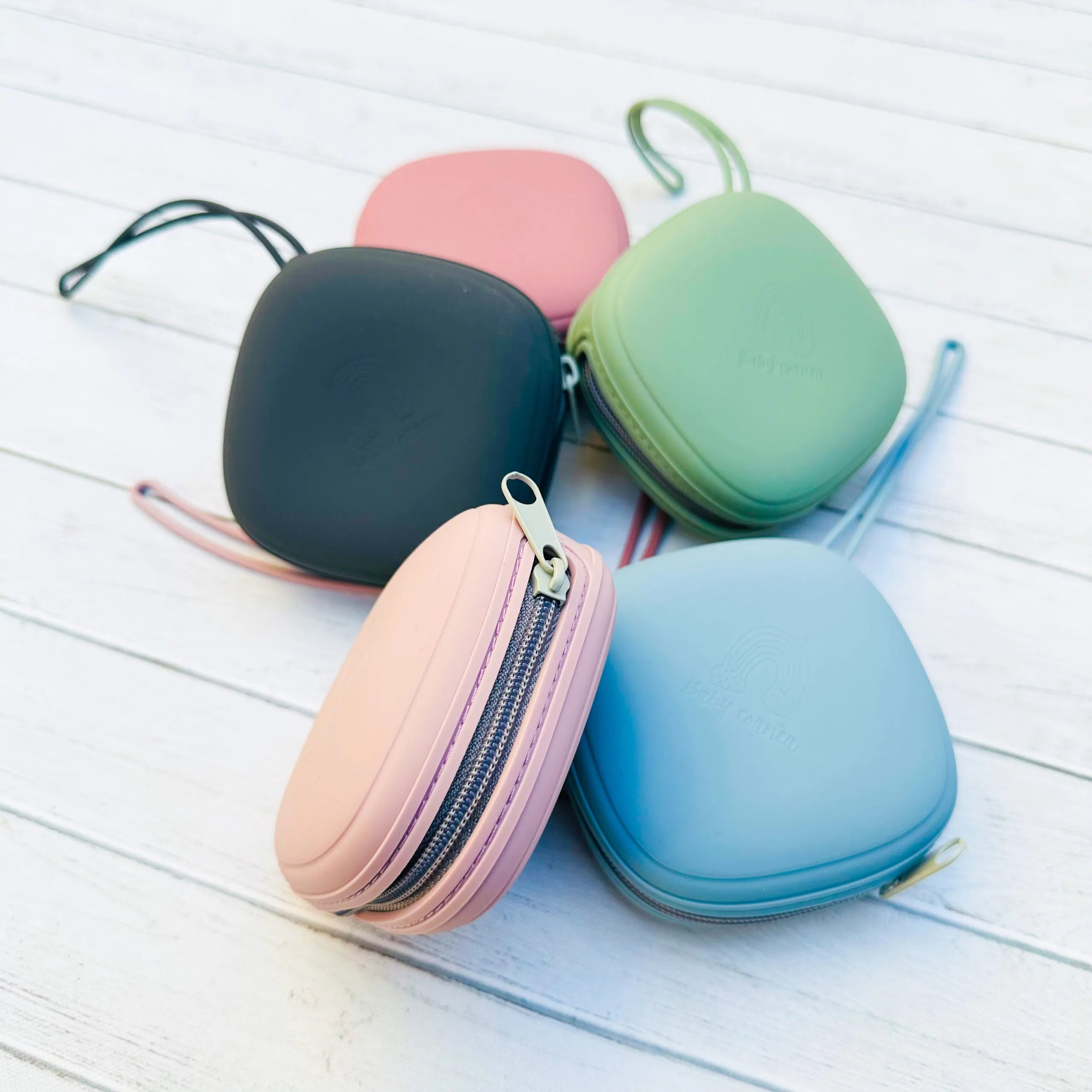 Nuestro portachupete cuadrado de silicona es libre de BPA, resistente e indestructible. Se cierra firme y se ata donde quieras. ¡Tu bebé feliz y su chupete siempre a salvo! 🍼✨