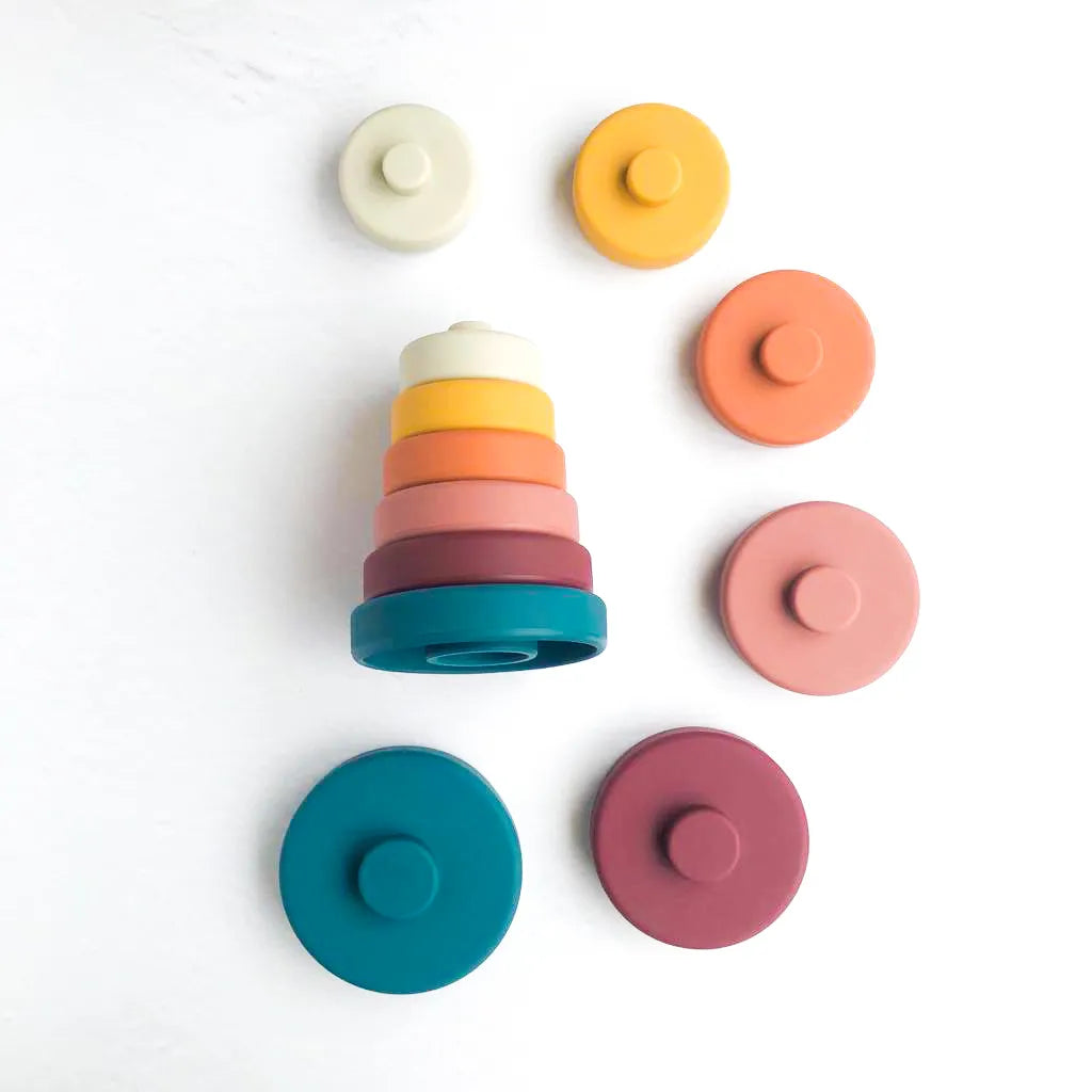Nuestra torre apilable de silicona alimentaria es el juguete perfecto para estimular la creatividad y motricidad fina de tu peque.